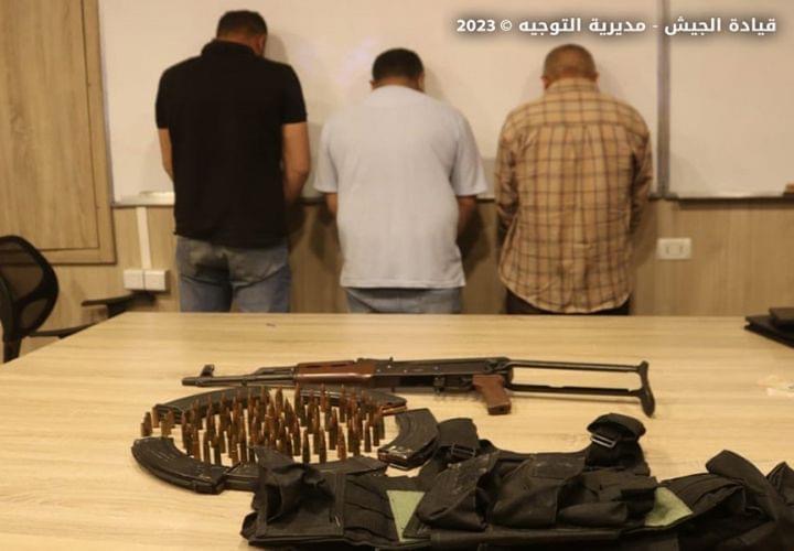 بتاريخ 1/ 6/ 2023 أوقفت قوة من الجيش في منطقة الفاعور – الدلهمية المواطنين (م.ح.) و(ح.ح.) و(ف.ح.) لإقدامهم على إطلاق النار من أسلحة حربية بسبب خلافات عائلية سابقة. وقد ضبطت في حوزة المواطن (ف.ح.) سلاحاً حربياً نوع كلاشينكوف وكمية من الذخيرة.