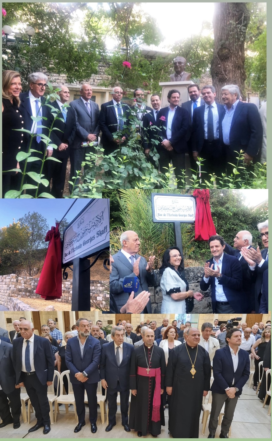 وكان سبق الاحتفال إزاحة الستارة عن لوحة تحمل اسم المكرّم تشير بتسمية إسم الشارع الذي يحتضن بيته التراثي العريق بالقرب من كنيسة سيدة الزلزلة، كما أزيحت الستارة عن نصب تذكاري للمكرّم في حديقة الشعراء – الممشية.