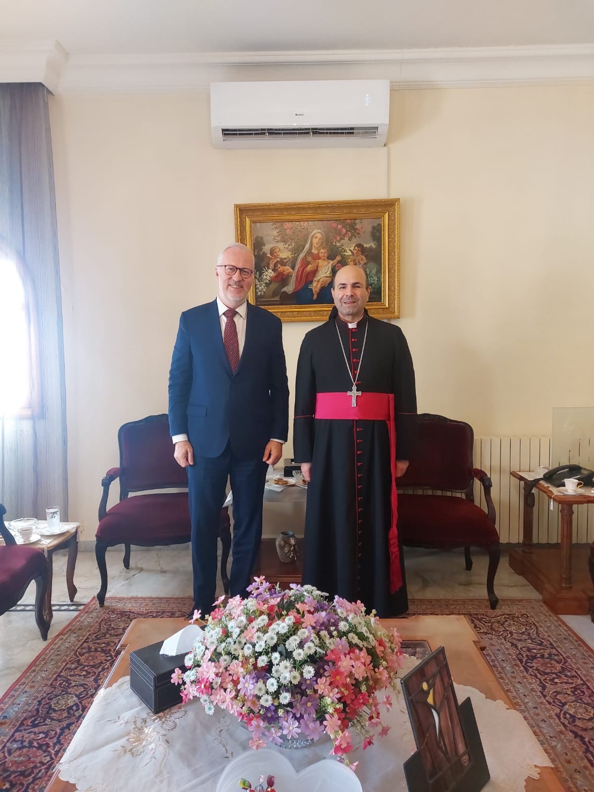 في لقاء صباحي جمع بين راعي أبرشية زحلة المارونية، المطران جوزف معوض، وقنصل فرنسا في لبنان، السيد إيريك أمبلار (M. Eric Amblard)، تم تناول القضايا السياسية الراهنة على الساحتين البقاعية واللبنانية. وقد تم التشديد من قبل المطران معوض على أهمية انتخاب رئيس للجمهورية في أقرب وقت ممكن، لضمان استقرار لبنان وتفعيل مؤسساته. كما أعرب سيادته عن تقديره للدور الذي تلعبه فرنسا في دعم لبنان خلال هذه المرحلة الدقيقة.