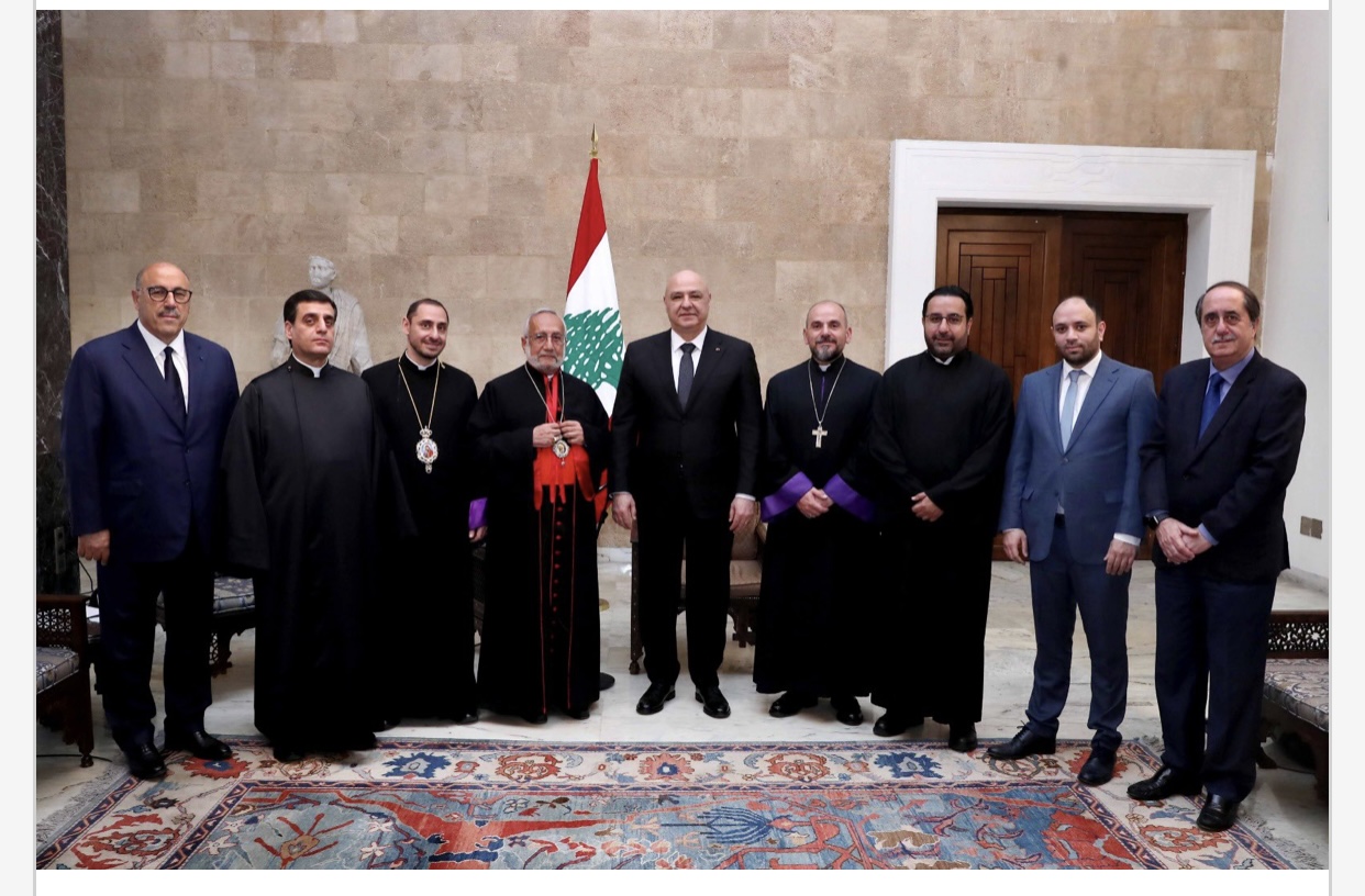 ومن جهته، قال الكاثوليكوس ميناسيان: "مستعدون للعمل والتضحية في سبيل نجاح عهدكم ونداؤنا لكل المسؤولين ان يكونوا الى جانبكم".