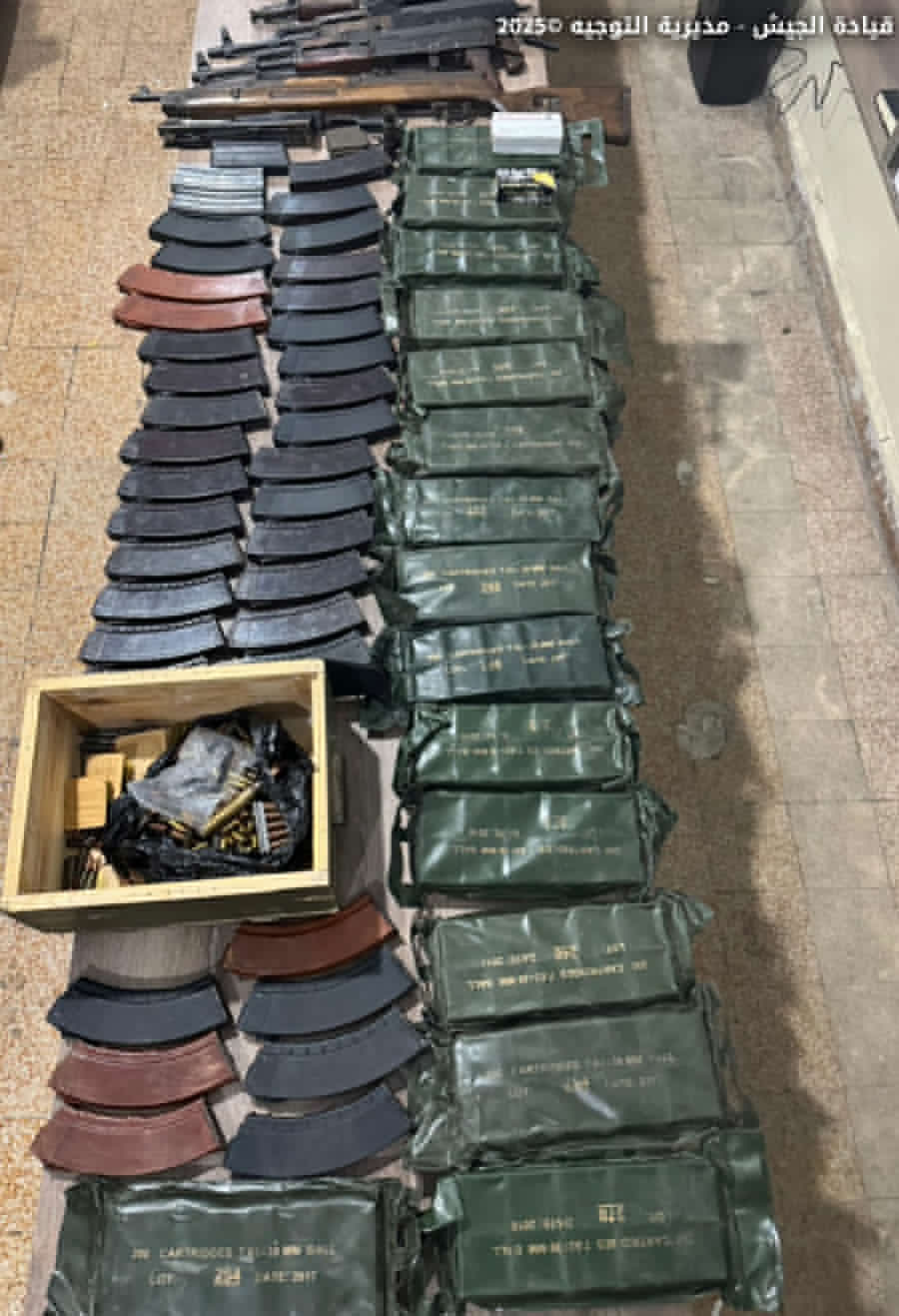 أعلنت قيادة الجيش عبر حسابها على منصة "اكس" أنّ "وحدة من الجيش تؤازرها دورية من مديرية المخابرات في منطقة الكواخ – الهرمل، دهمت منزل المطلوب (ع.ن.)، وضبطت مخزنًا يحتوي صواريخ كاتيوشا، وسلاح آر.بي. جي مع ذخيرته، بالإضافة إلى كمية كبيرة من الأسلحة والذخائر الحربية المختلفة، وتجري المتابعة لتوقيفه".